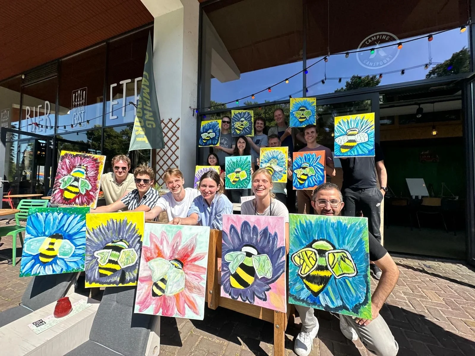 Het schilderen werkt als de perfecte ijsbreker voor elke groep. Of we nu een Bob Ross landschap maken of losgaan met Action Painting: je raakt aan de praat, lacht om elkaars creaties en gaat gegarandeerd met een bak nieuwe energie naar huis.